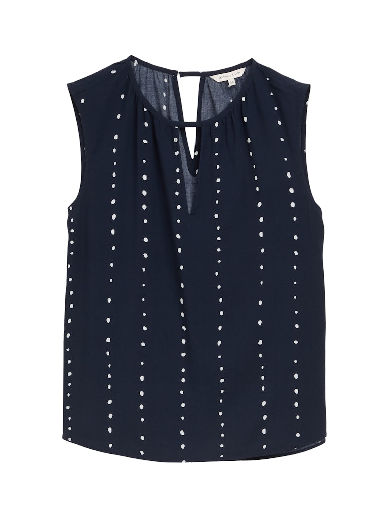 Mouwloze blouse van Tom Tailor in een stippen print met een ronde hals en een uitgesneden detail aan de voor- en achterzijde.