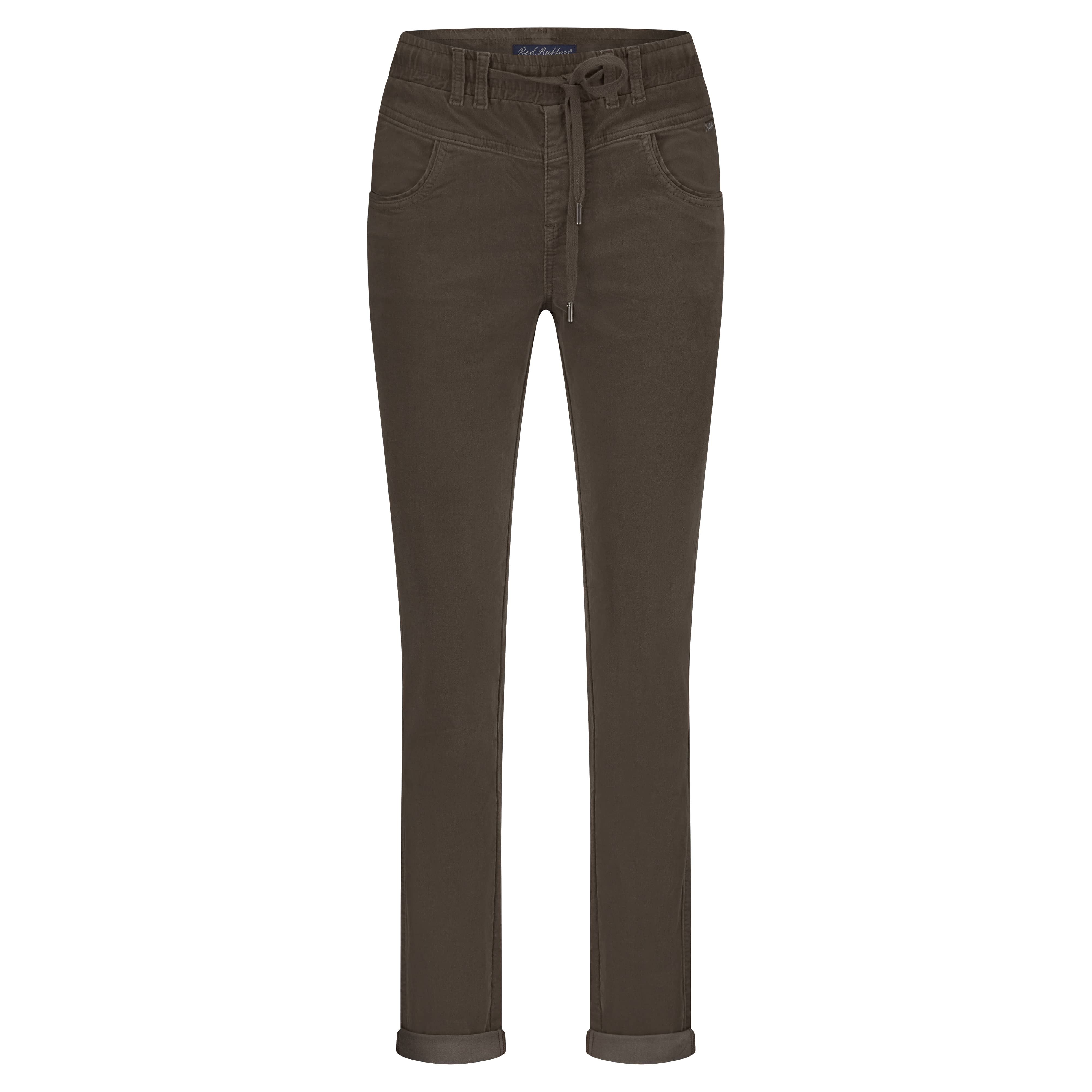 Fluwelen 4-pocket broek van Red Button met taps toelopende pijpen voorzien van omslag en een elastische tailleband met van trekkoord.