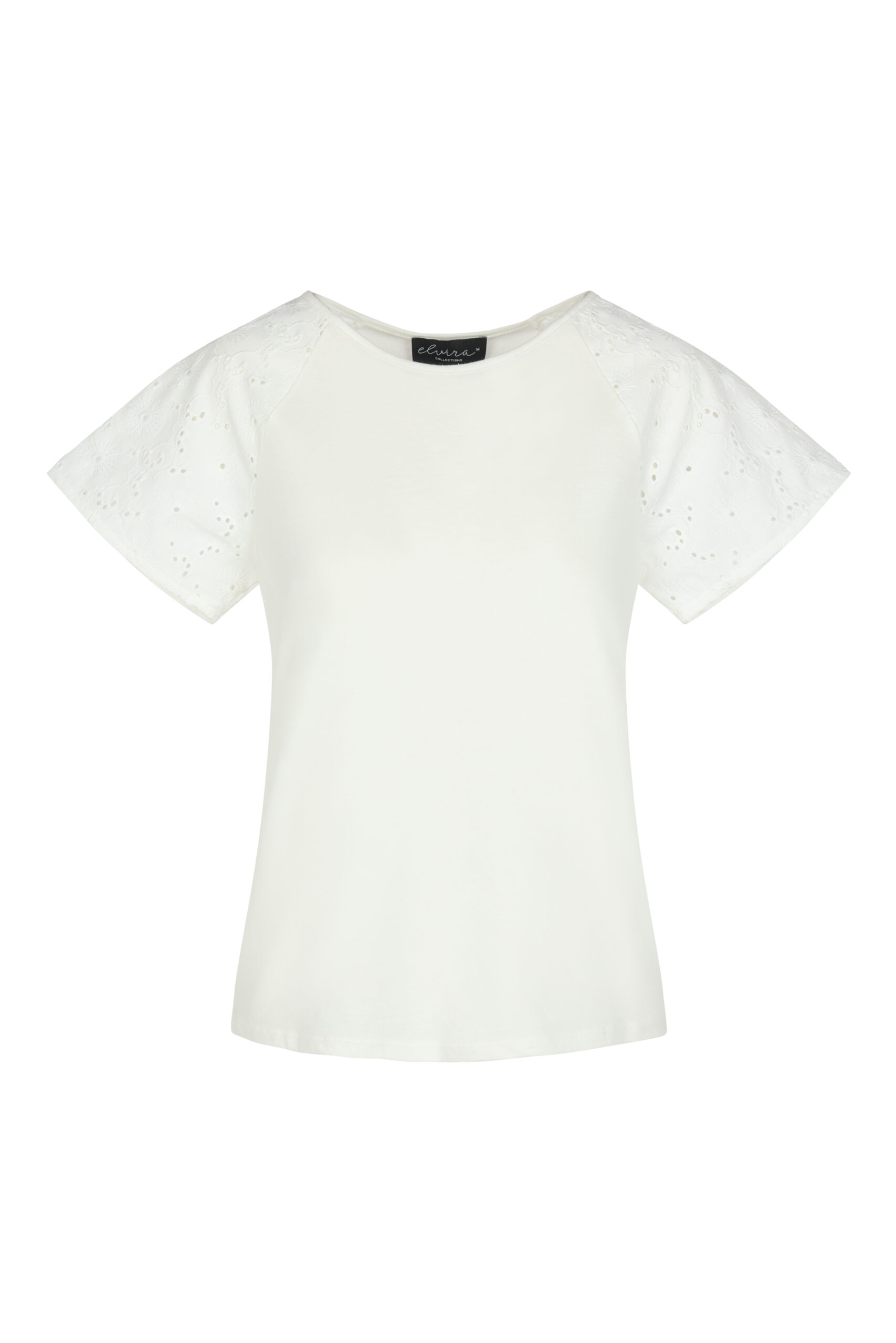 Broderie shirt van Elvira met korte aangeknipte mouwen en een ronde hals.