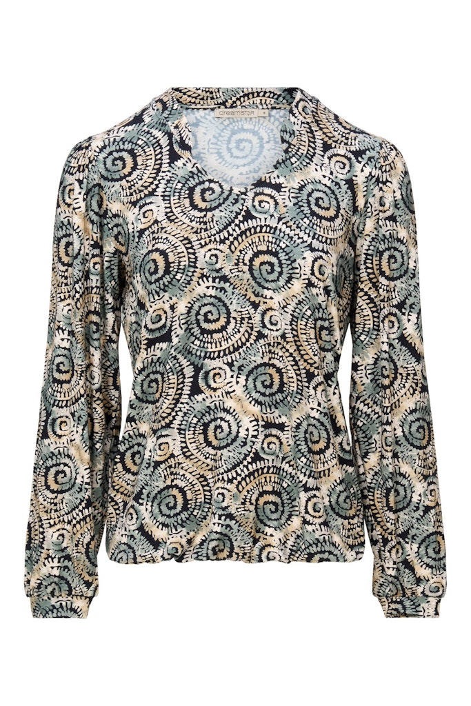 Shirt van Dreamstar in een all-over dessin met lange mouwen, V-hals en een elastische zoom. Materiaal: Viscose 95%| elastan 5%