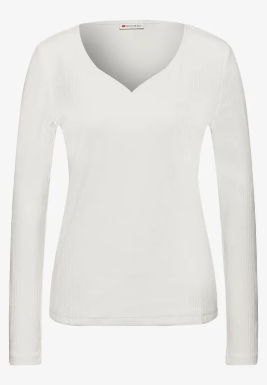 Shirt van Street One in en ribstructuur met lange mouwen en een hartvormige halslijn. Materiaal: Katoen 95%| elastan 5%