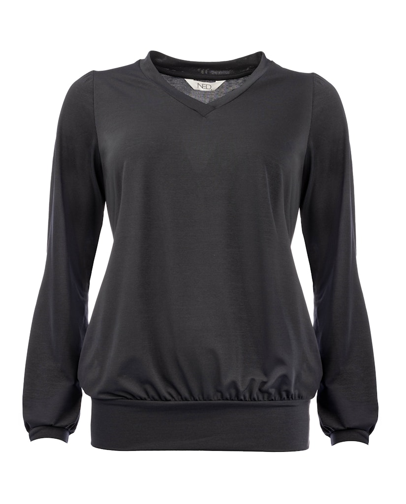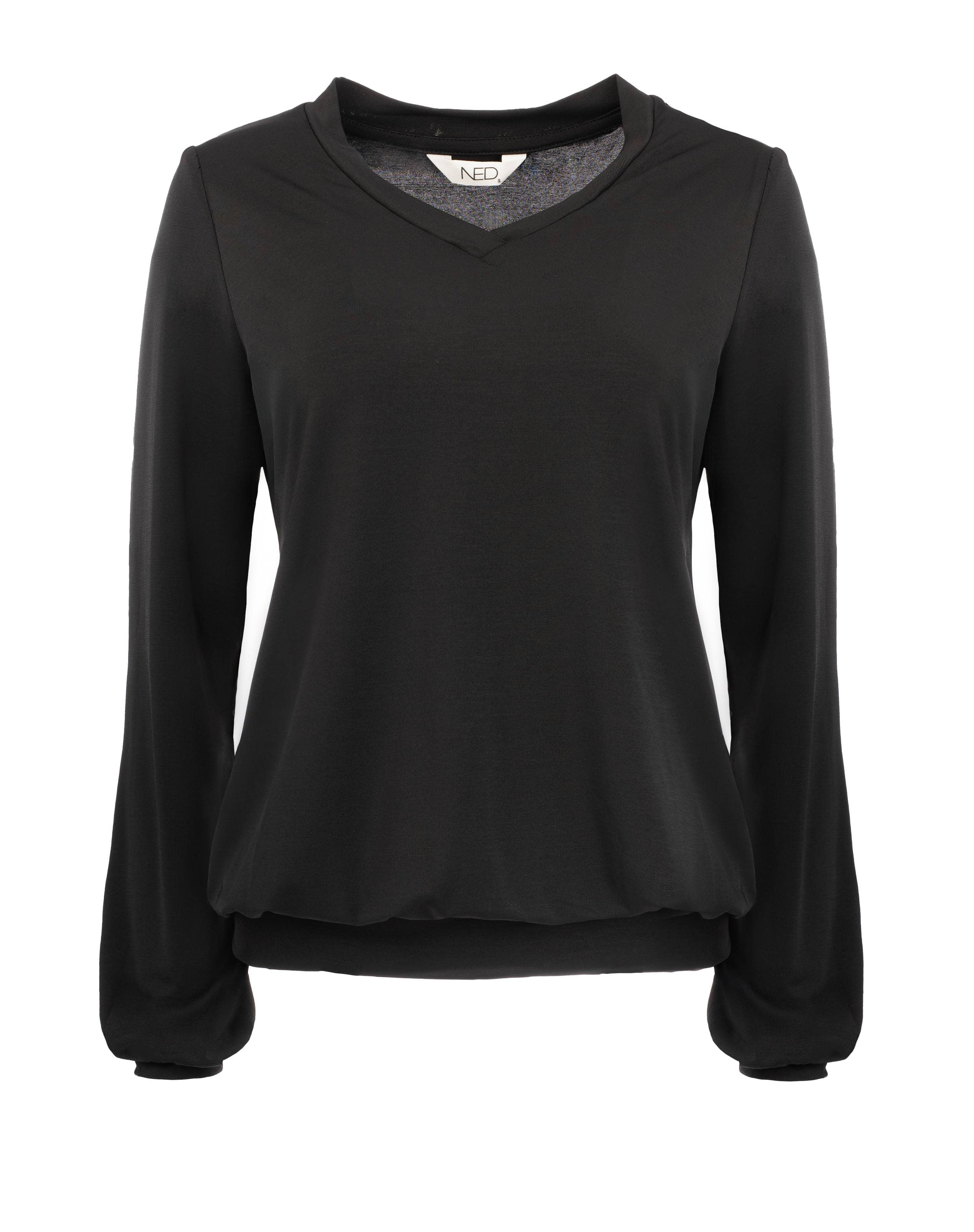 Glanzend jersey shirt van N.E.D. met lange mouwen, V-hals en een elastische boord aan de onderzijde. Materiaal: Polyester 94%| elastan 6%