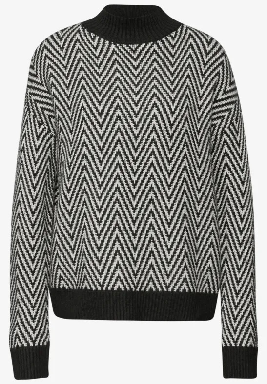 Jacquard trui van Street One in een zigzag dessin met lange mouwen, opstaande kraag en ribgebreide boorden.