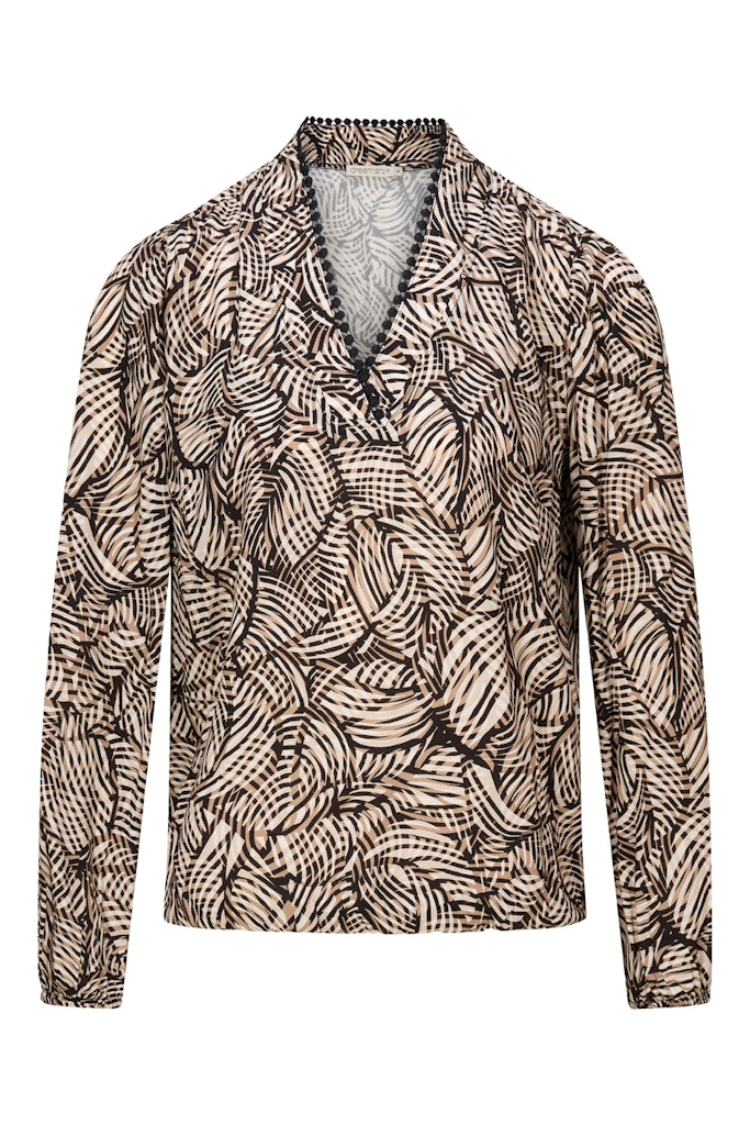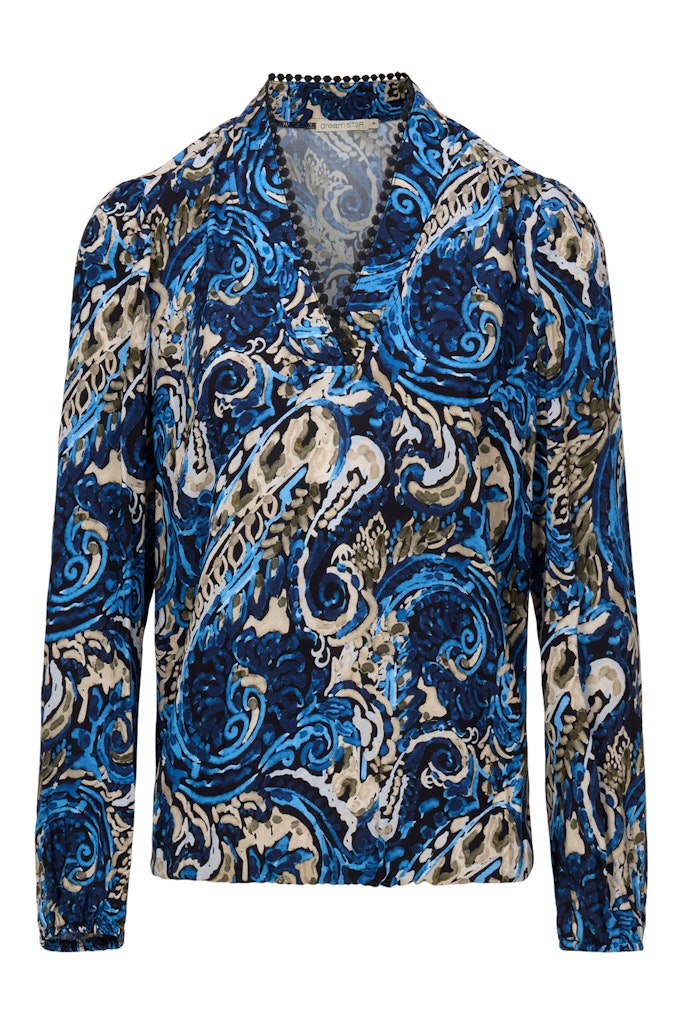 Blouse van Dreamstar in een all-over dessin met lange mouwen, opstaande kraag en decoratief afgewerkte V-hals. Materiaal: Viscose 100%