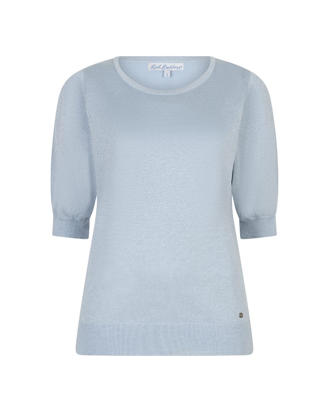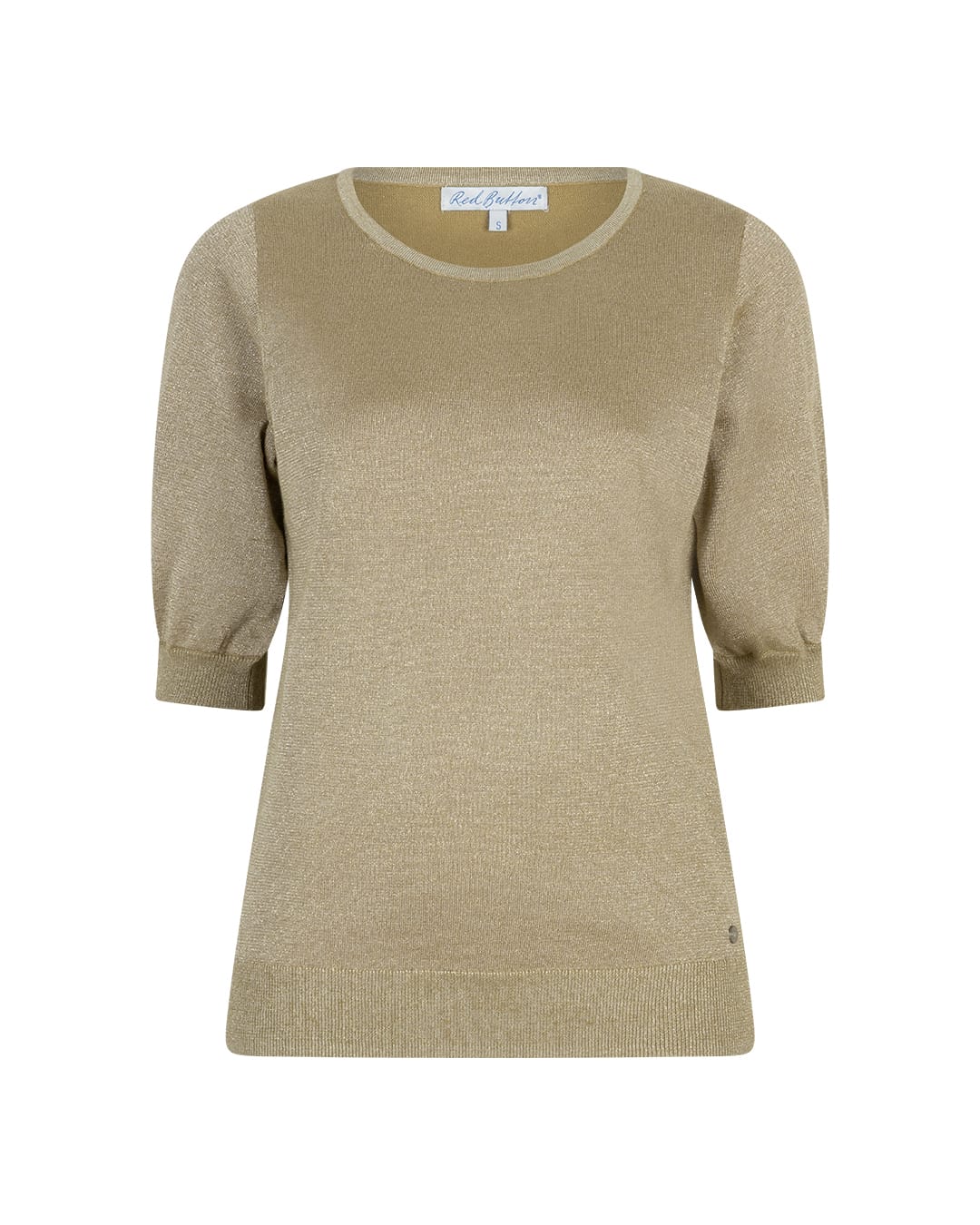 Fijn gebreide trui van Red Button voorzien van een lichte glitters met korte pofmouwen, ronde hals en ribgebreide boorden. Materiaal: Ranie 47%| katoen 38%| metallic 15%