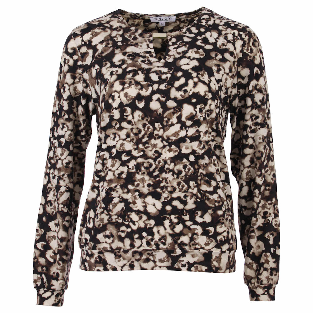 Blouson van Enjoy in een all-over dessin met lange mouwen, ronde hals voorzien van V-inkepng en metaal detail, en een elastische boord aan de onderzijde.