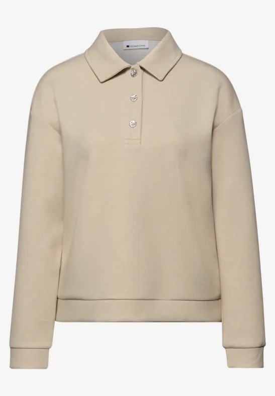 Poloshirt van Street One met lange mouwen, polokraag voorzien van korte knoopsluiting en elstische boorden.