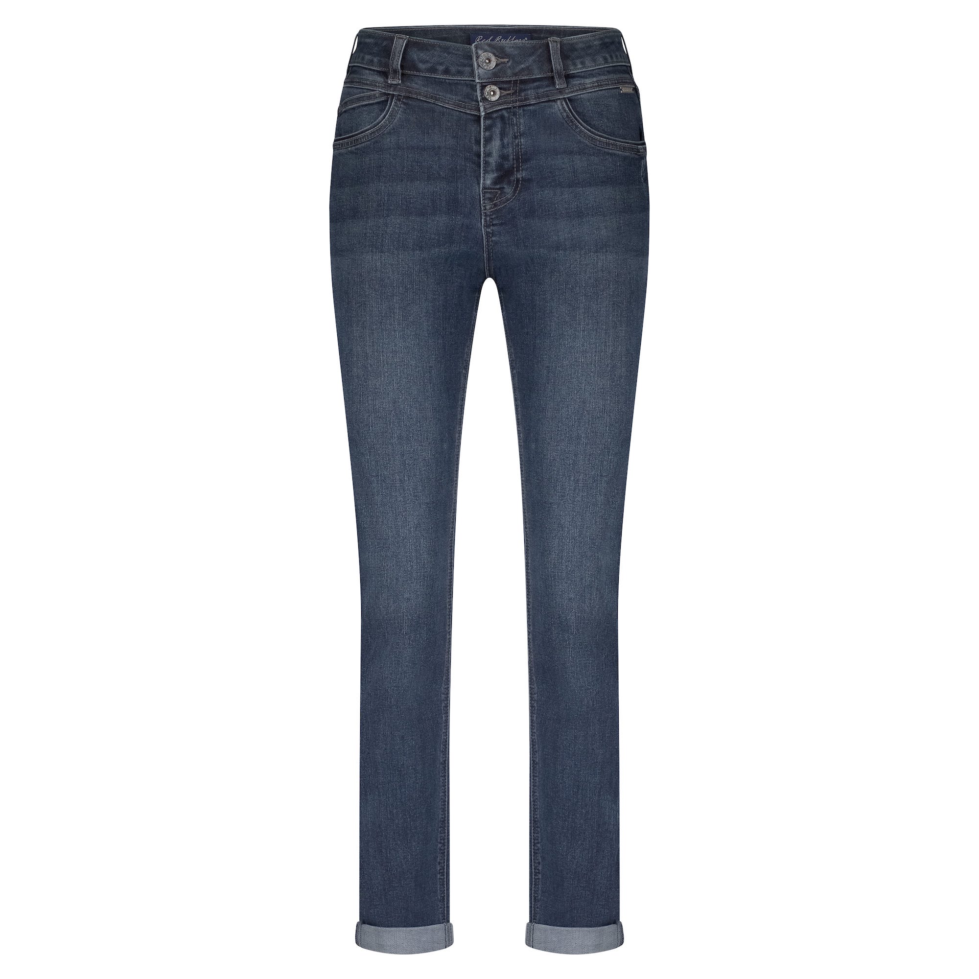 4-pocket jeans van Red Button met een hoge taille, dubbele knoop- en ritssluiting en taps toelopende pijpen voorzien van omslag.