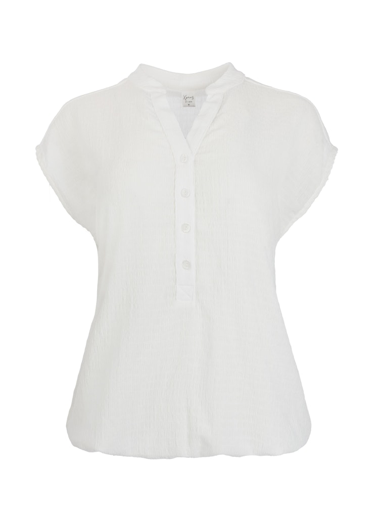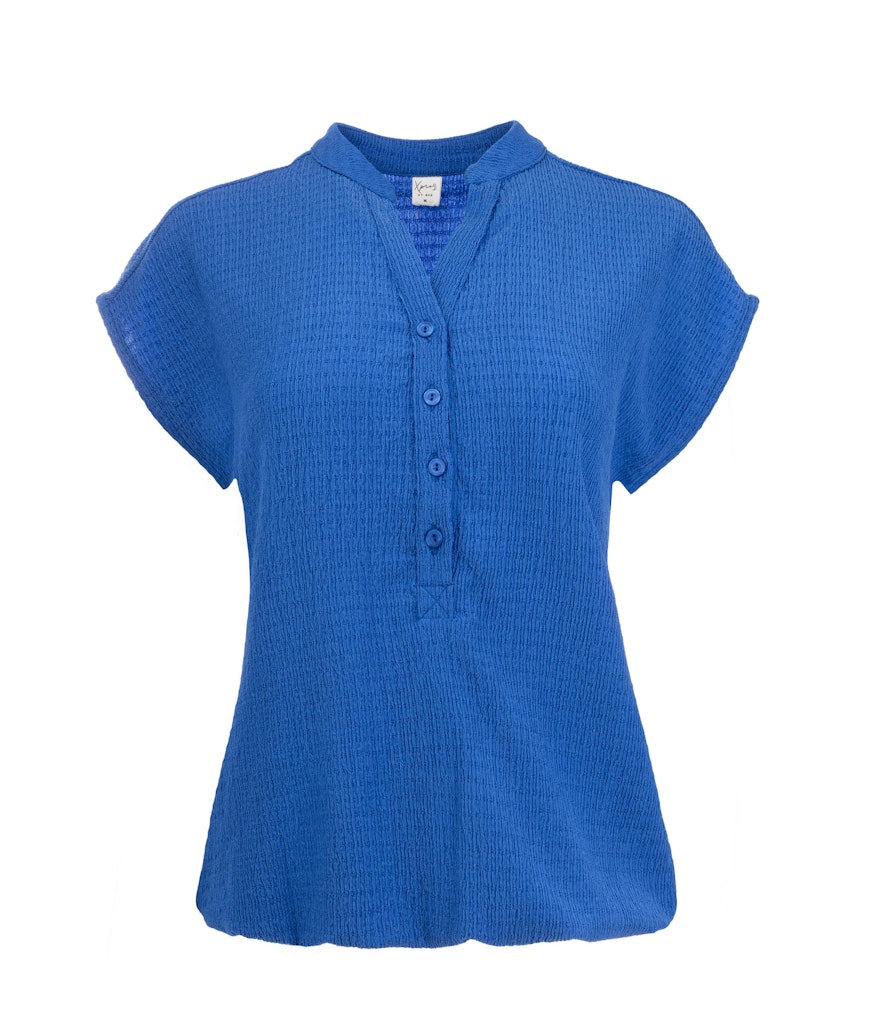 Jersey shirt van N.E.D. in een structuur dessin met korte aangeknopte mouwen, opstaande kraag, V-hals, halve knoopsluiting en een elastische zoom.