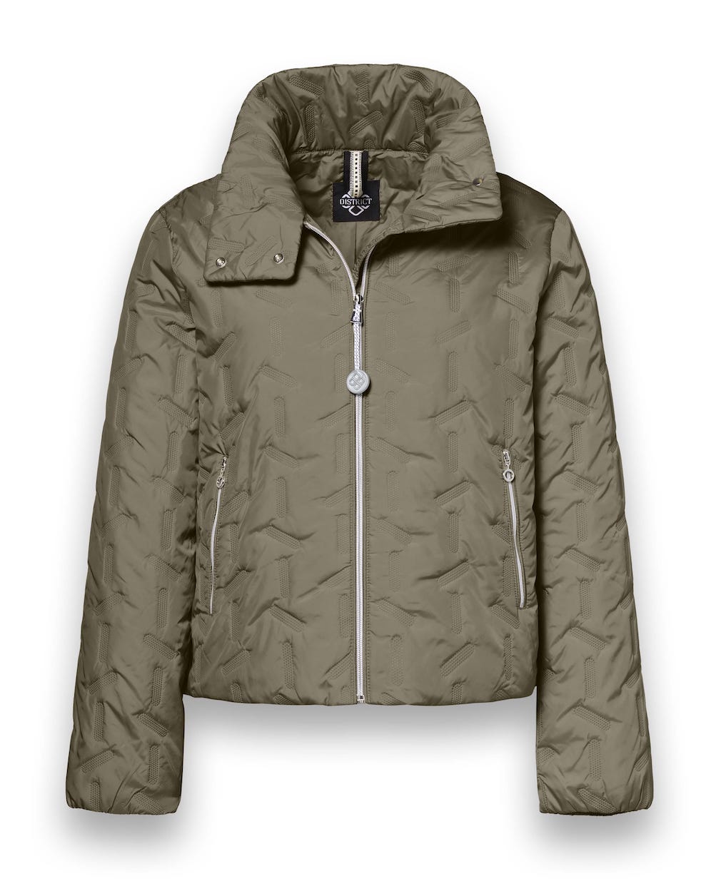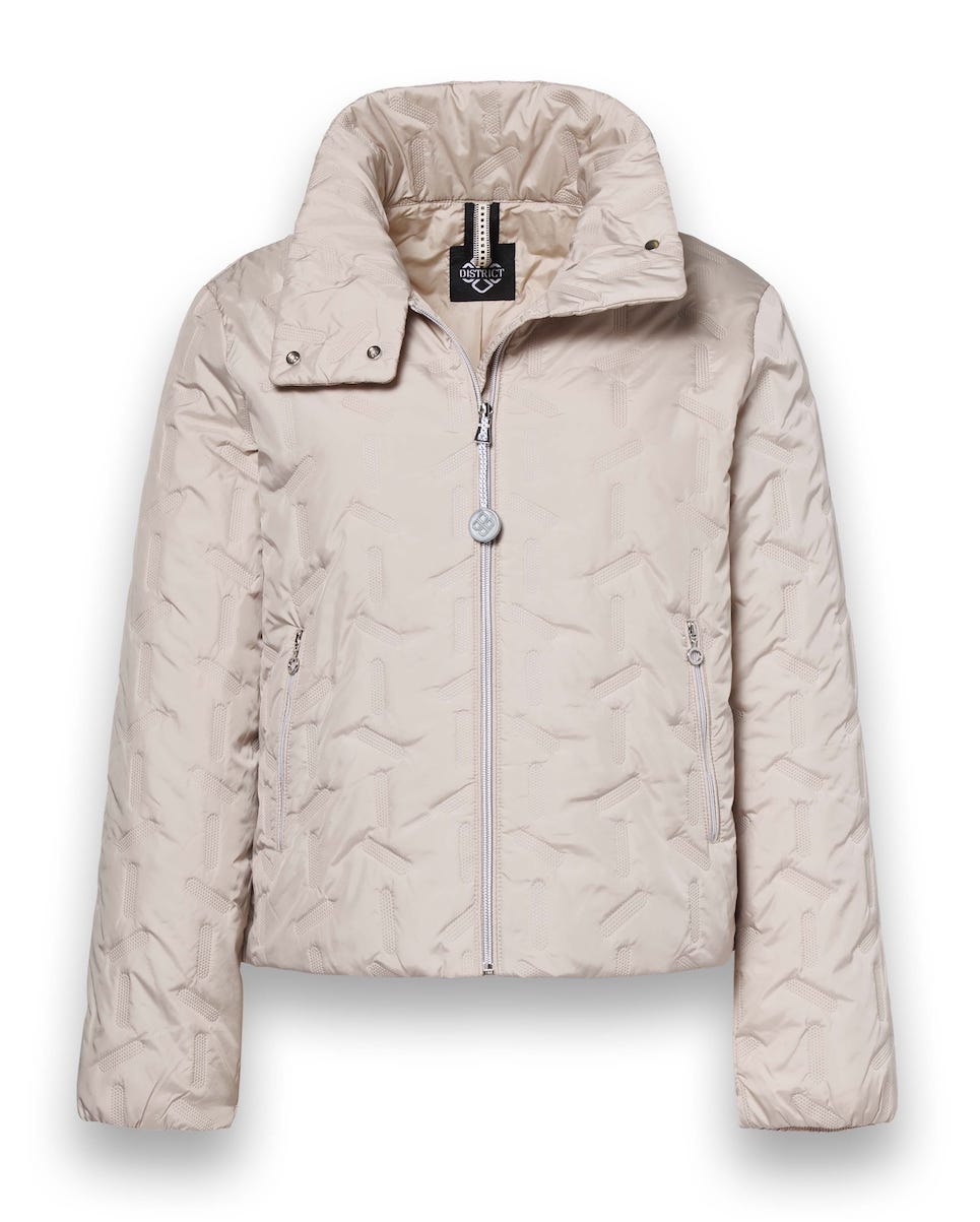 Jack van District met een laserprint in fantasievorm, ritssluiting, opstaande kraag, twee ritszakken en een elastische zoom aan de achterzijde.