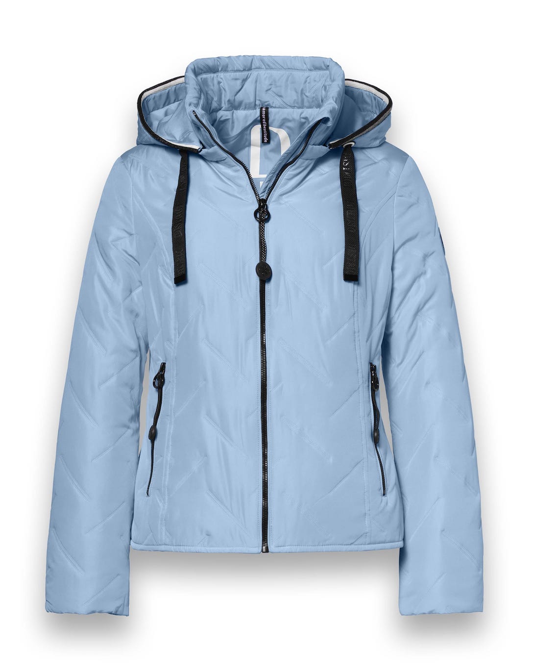 Gewatteerd jack van District met een ritssluiting, opstaande kraag, afneembare capuchon voorzien van trekkoord en twee ritszakken. Materiaal: Polyester 100%
