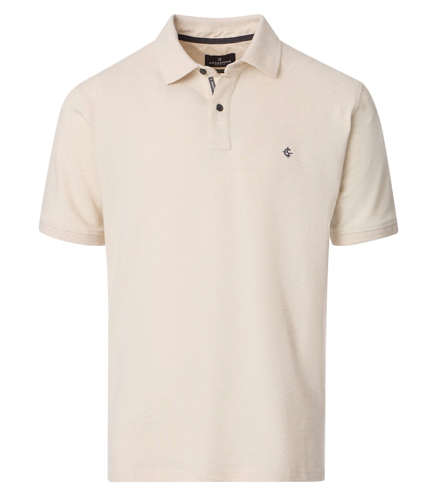 Gemêleerde polo van Casa Moda met korte mouwen, polo kraag met korte knoopsluiting en een geborduurd logo op de linkerborst.