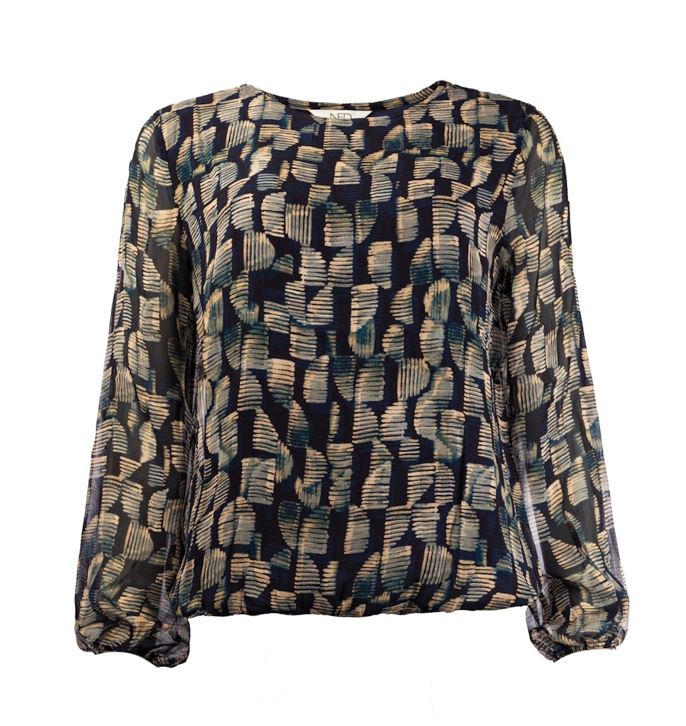 Shirt van NED in een all-over dessin met lange mouwen, ronde hals en elastische boorden. Materiaal: Viscose 100%