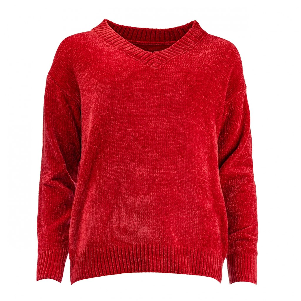 Chenille trui van NED met lange mouwen, V-hals en ribgebreide boorden. Materiaal: Polyester 100%