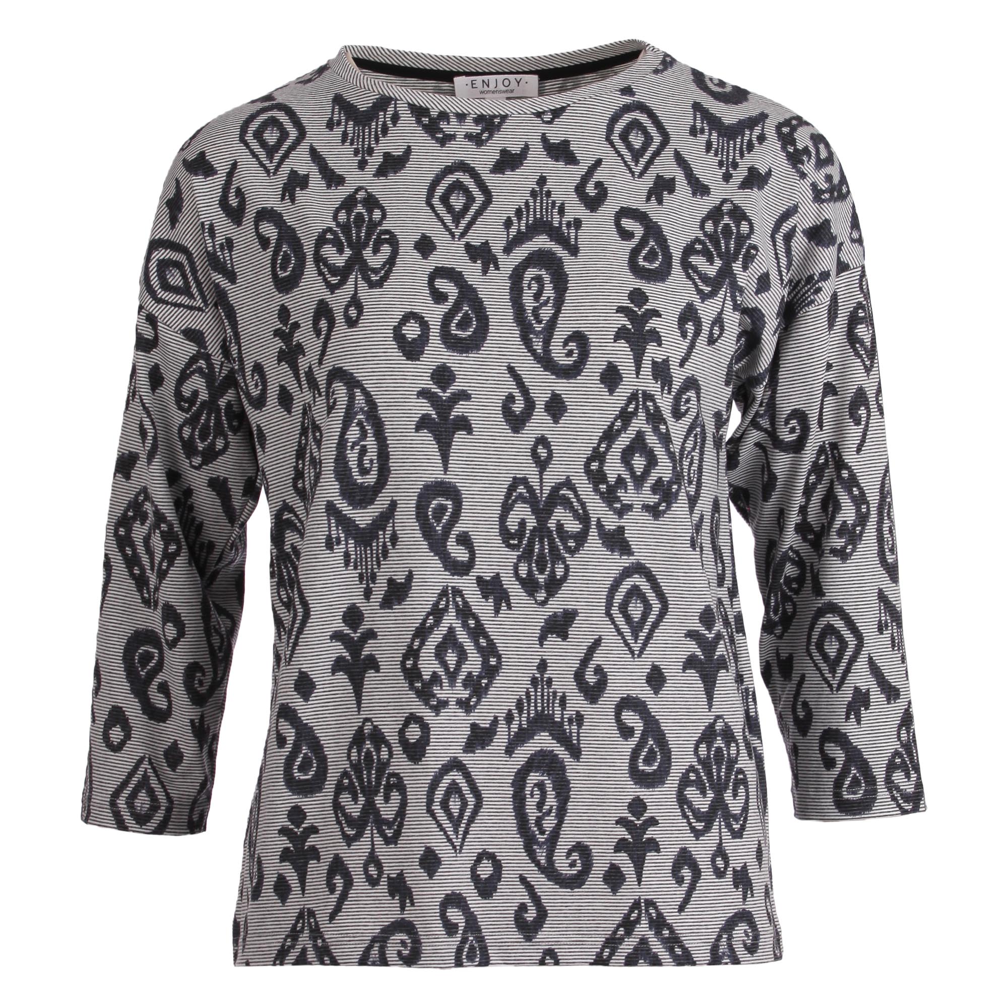 Shirt van Enjoy in een all-over dessin met driekwart mouwen en een ronde hals. Materiaal: Polyester 50%| viscose 44%| elastan 6%