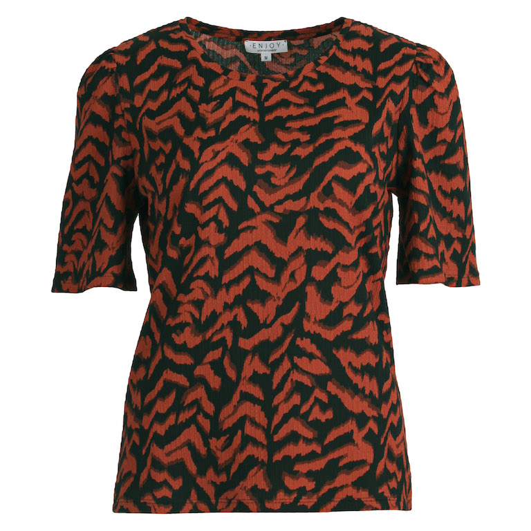 Shirt van Enjoy in een all-over dessin met korte mouwen en een ronde hals. Materiaal: Polyester 99%| elastan 1%