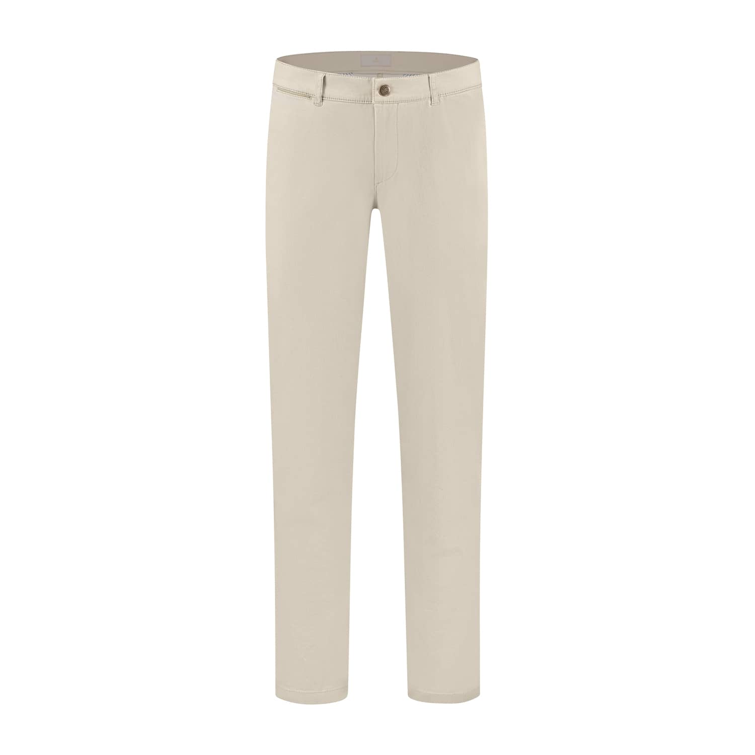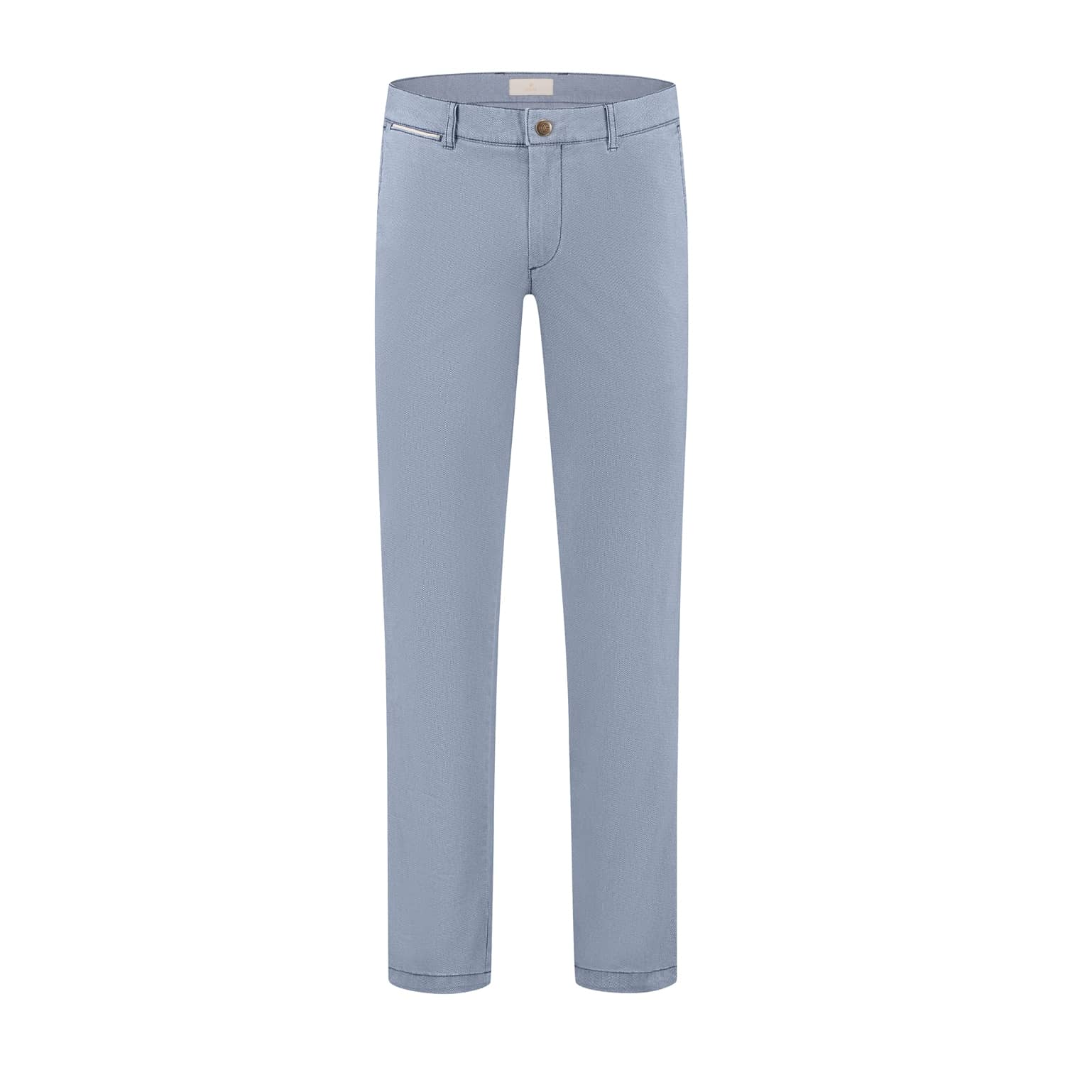 Chino van Com4 in een structuurstof met een modern fit, knoop- en ritssluiting, steekzakken en paspelzakken met knoop aan de achterzijde.