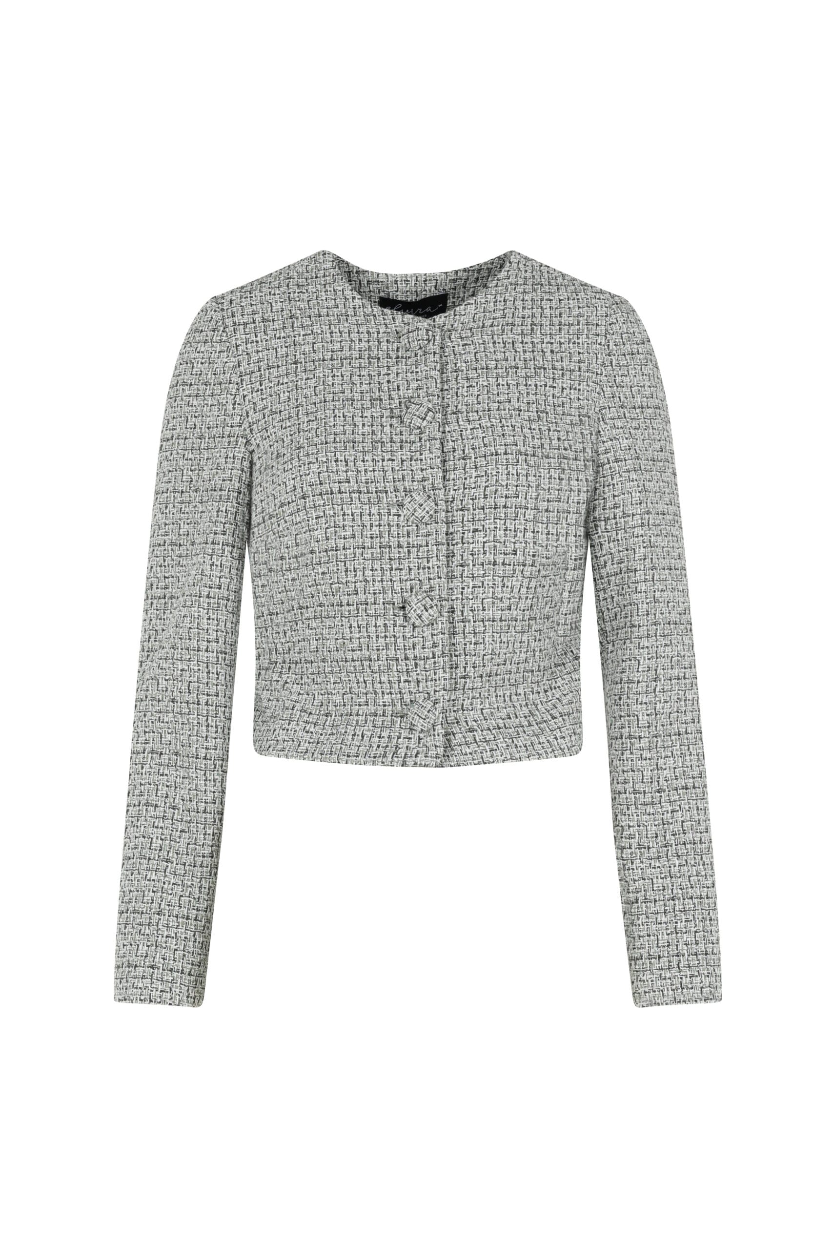 Korte tweed blazer van Elvira met lange mouwen, ronde hals en een knoopsluiting.
