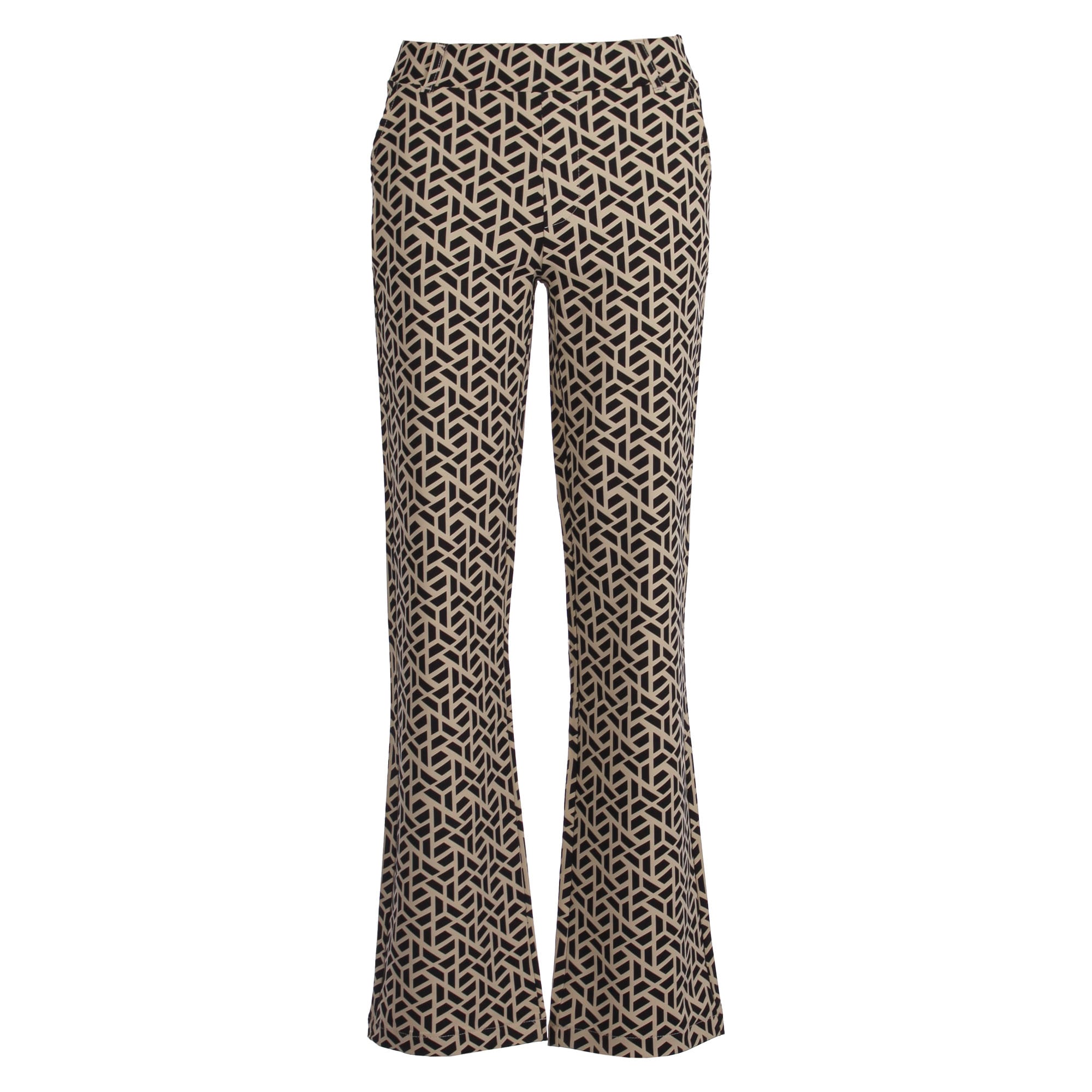Flared broek van Enjoy in een grafisch dessin met steekzakken, twee paspelzakken aan de achterzijde en een elastische tailleband. Materiaal: Polyester 88%| elastan 12%