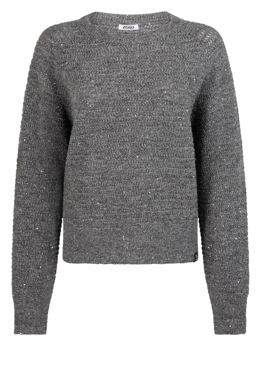 Trui van Zoso met lurex erin verwerkt, lange mouwen en een ronde hals. Materiaal: Acryl 47%| recycled polyester 40%| metallic 10%| spandex 3%