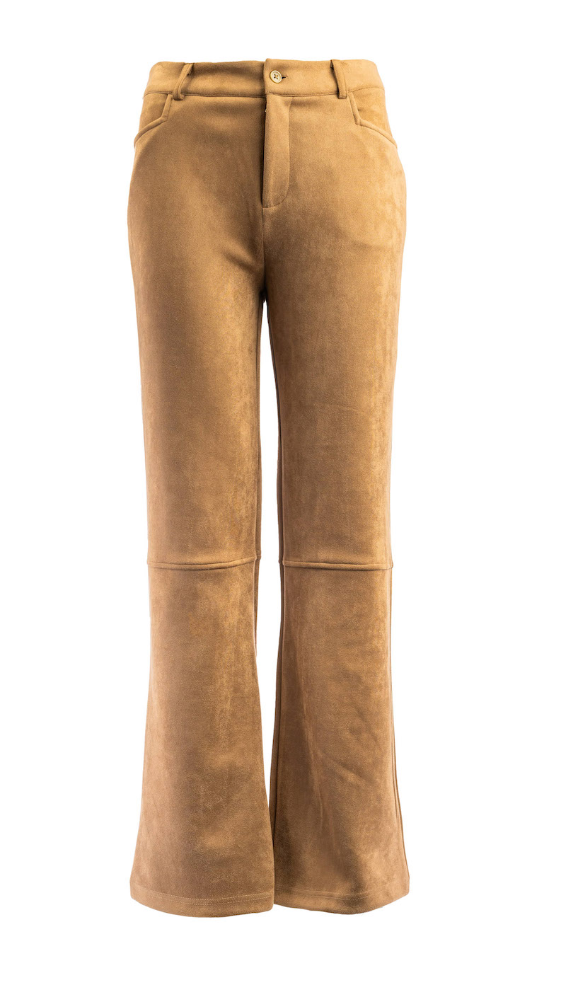 Flared broek van Icnk met een knoop- en ritssluiting, steekzakken en deelnaden bij de knieën.