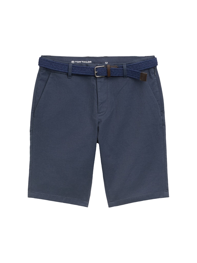 Chino short van Tom Tailor in een structuur dessin met een knoop- en ritssluiting, steekzakken, paspelzakken aan de achterzijde en een ceintuur in de taille. Materiaal: Katoen 97%| elastan 3%