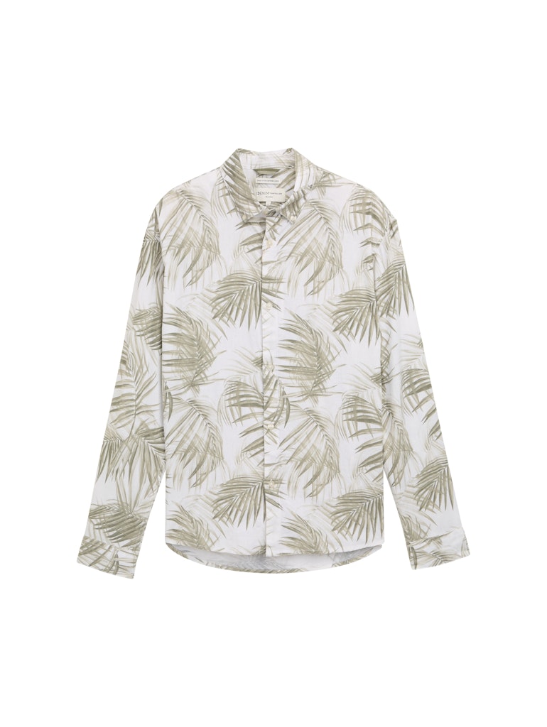 Overhemd van Tom Tailor Denim in een bladeren dessin met lange mouwen, kraag en een knoopsluiting. Materiaal: Viscose 73%| linnen 27%