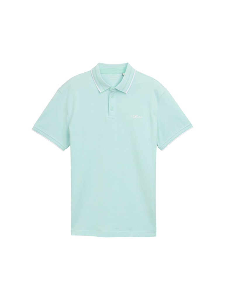 Piqué polo van Tom Tailor in een gemêleerd dessin met korte mouwen, polokraag voorzien van korte knoopsluiting, geborduurd logo op de linkerborst en contrasterende details.