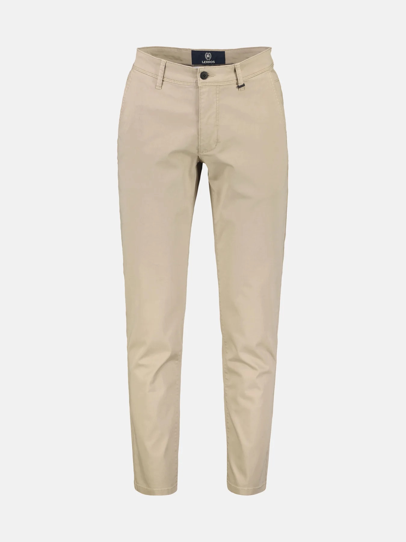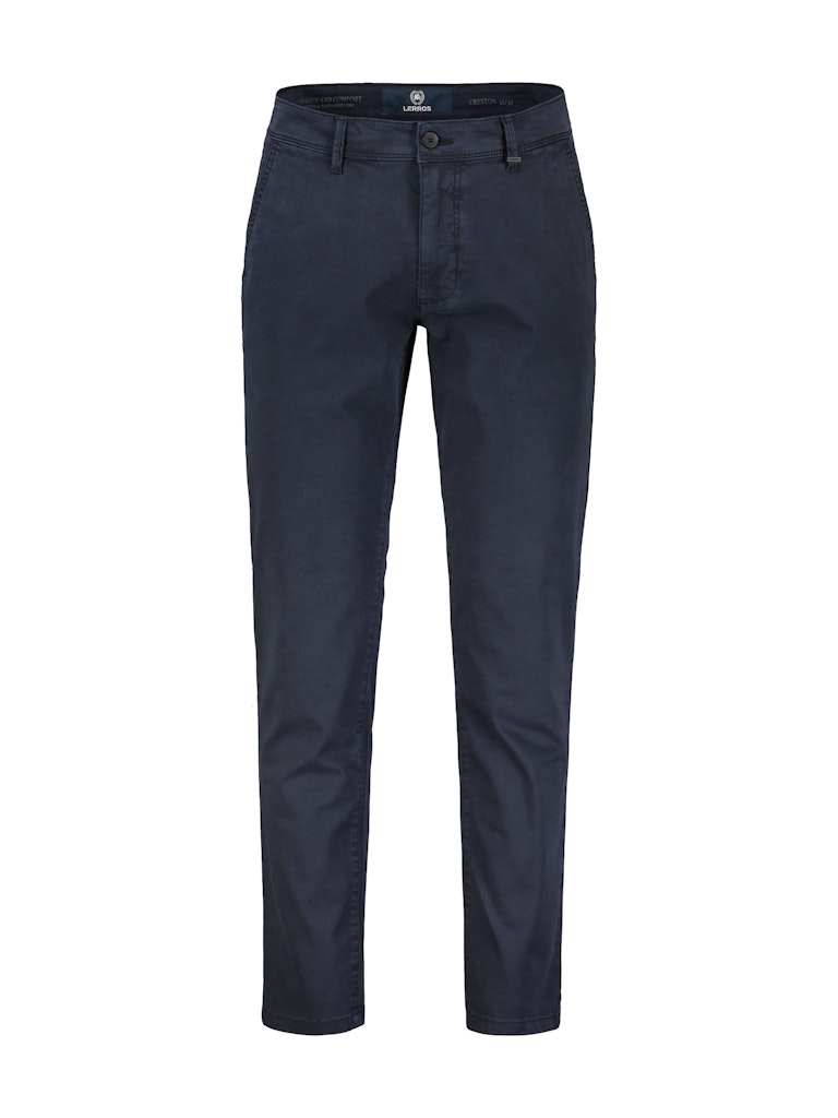 Broek van Lerros met een knoop- en ritssluiting, steekzakken en paspelzakken aan de achterzijde. Materiaal: Katoen 80%| lyocell 17%| elastan 3%