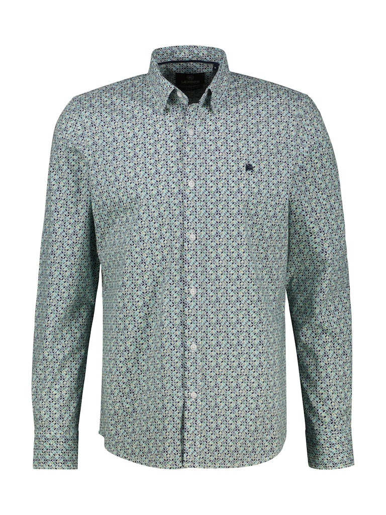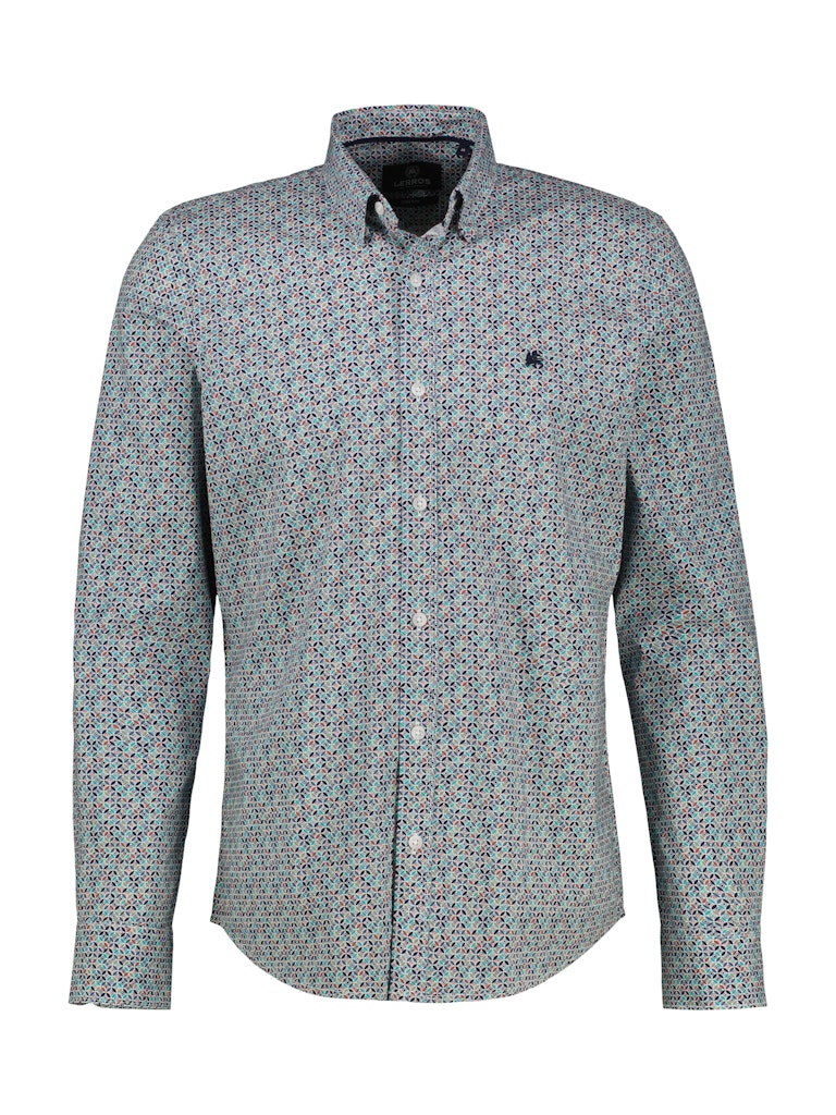Overhemd van Lerros in een all-over dessin met lange mouwen, kraag, knoopsluiting en een opgestikte borstzak.