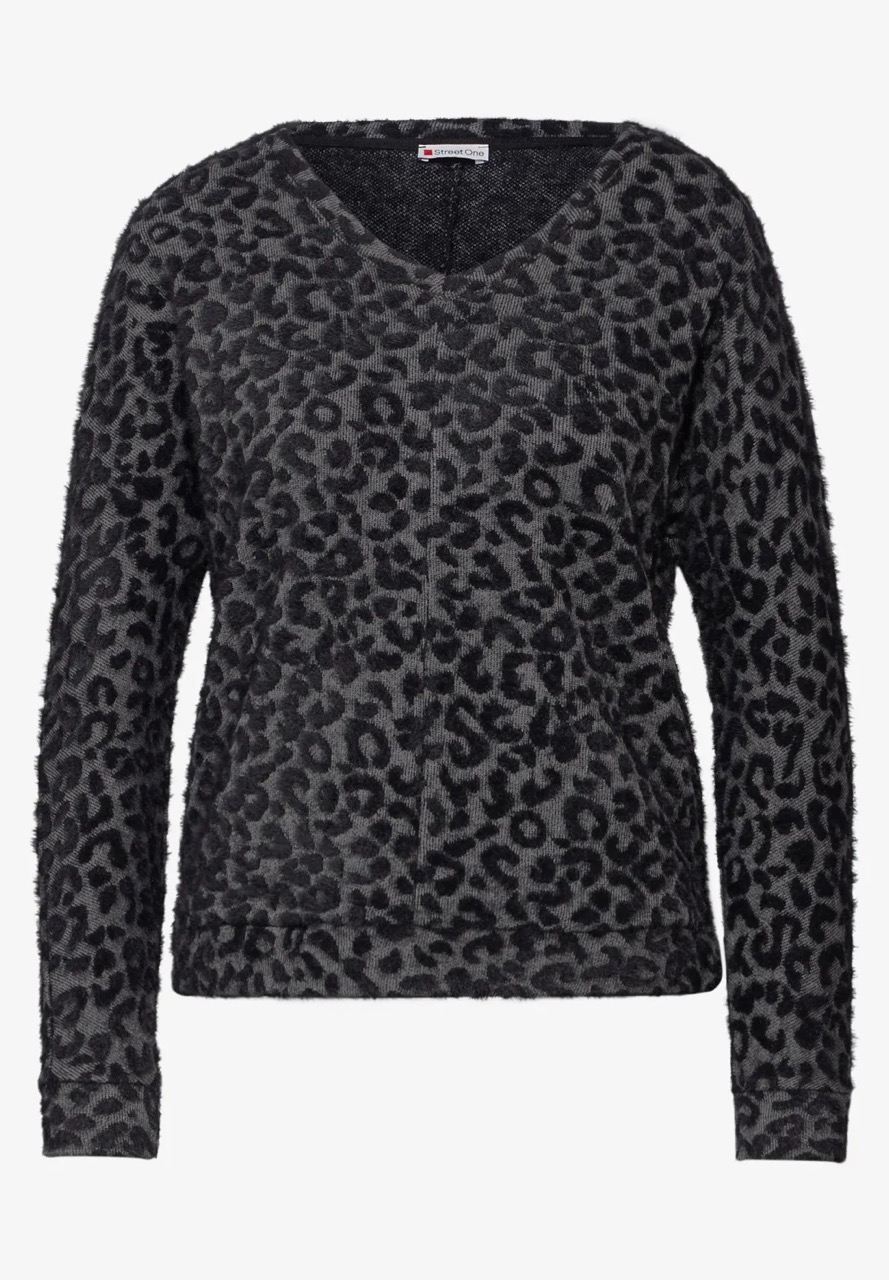 Shirt van Street One in een luipaard dessin met lange mouwen en een V-hals.
