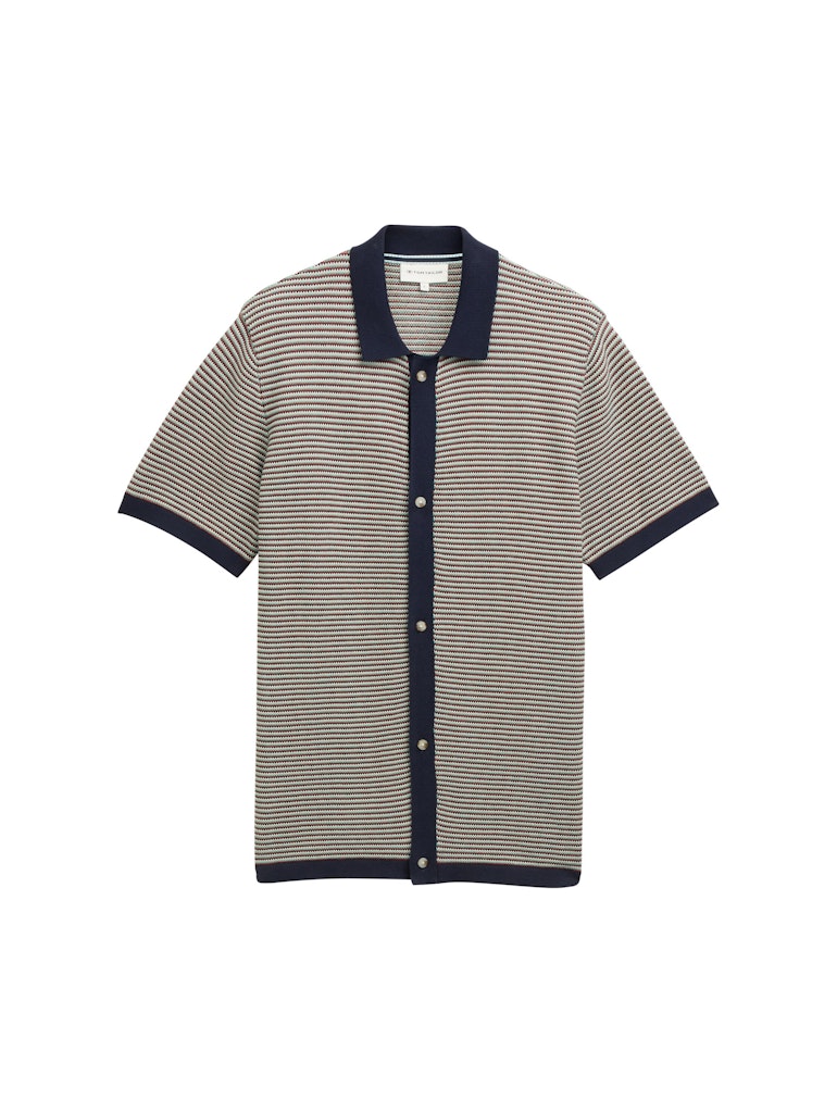 Gebreid overhemd van Tom Tailor in een structuur dessin met korte mouwen, kraag en een knoopsluiting. Materiaal: Katoen 80%| gerecycled katoen 20%