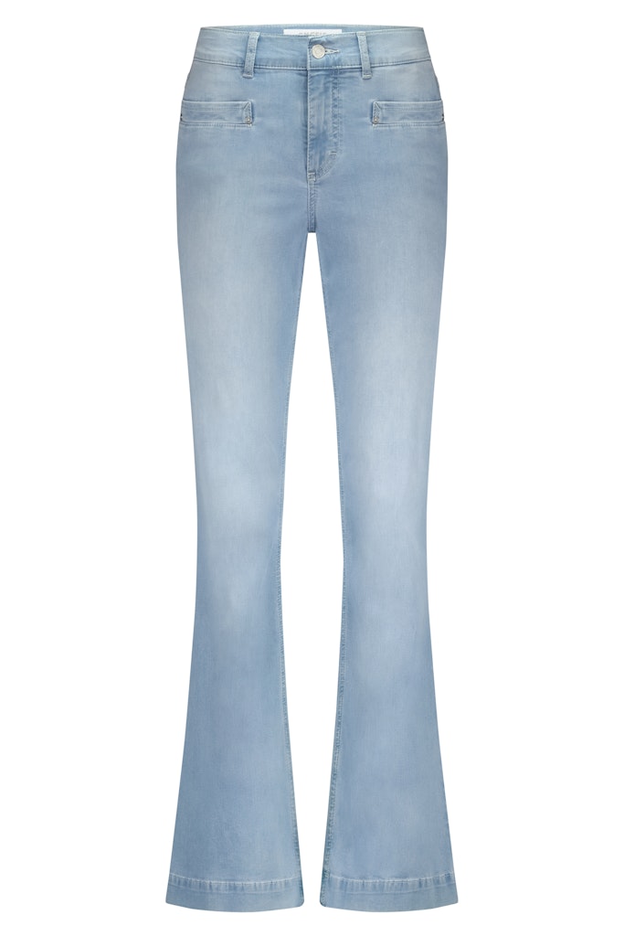 Flared jeans van Angels met een knoop- en ritssluiting, twee paspelzakken aan de voorzijde, opgestikte achterzakken en een hoge taille. Materiaal: Katoen 89%| polyester 8%| elastan 3%