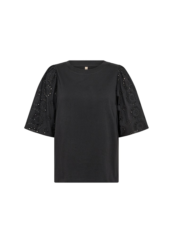 Blouse van Soya Concept met halflange broderie mouwen en een ronde hals. Materiaal: Katoen 100%