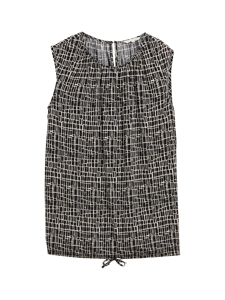 Mouwloze blouse van Tom Tailor in een all-over dessin met een ronde hals, keyhole voorzien van knoopsluiting aan de achterzijde en een strikkoord in de zoom.