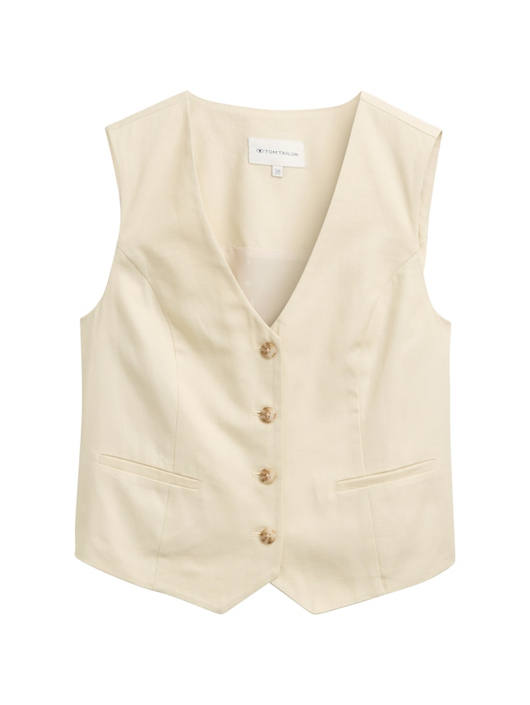 Gilet van Tom Tailor met een V-hals, knoopsluiting en twee paspelzakken. Materiaal: Katoen 100%