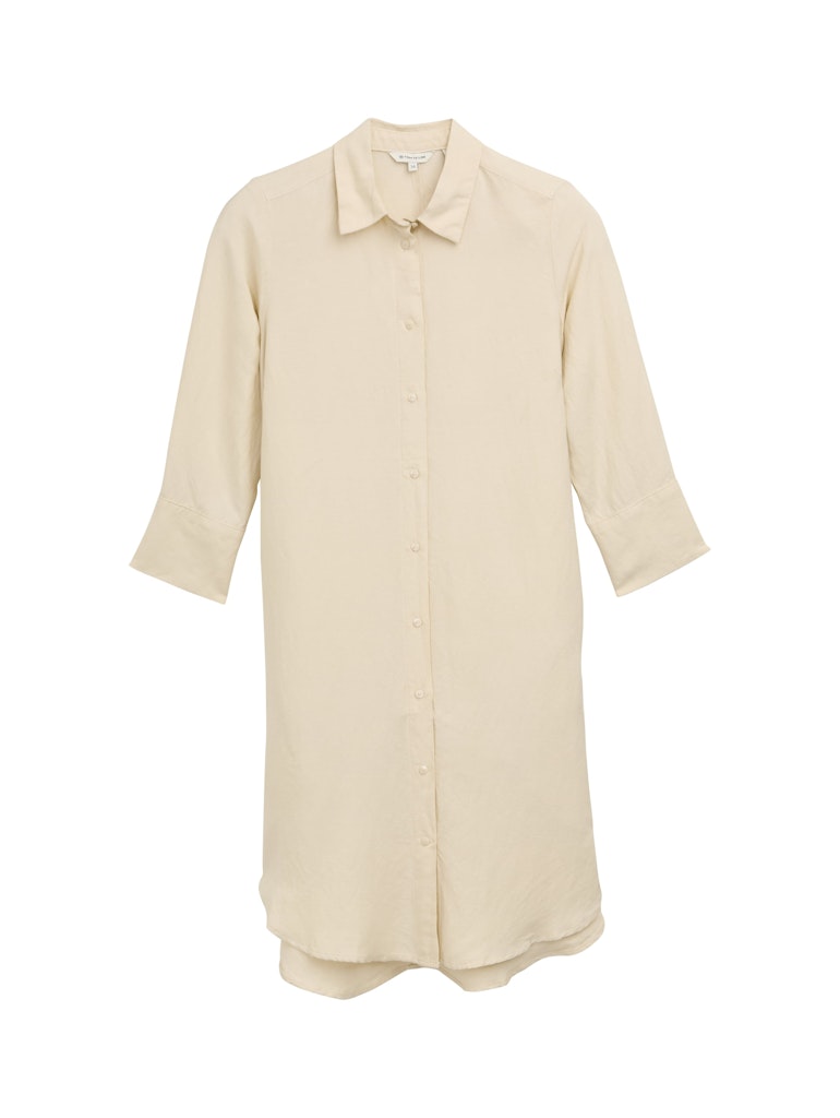 Linnen jurk van Tom Tailor met lange mouwen, kraag, doorlopende knoopsluiting en twee steekzakken. Materiaal: Linnen 55%| viscose 45%