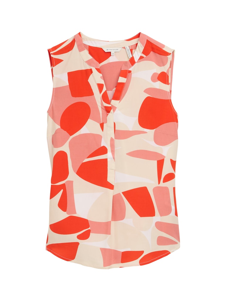 Mouwloze blouse van Tom Tailor in een all-over dessin met een V-hals en een afgeronde zoom. Materiaal: Viscose 100%