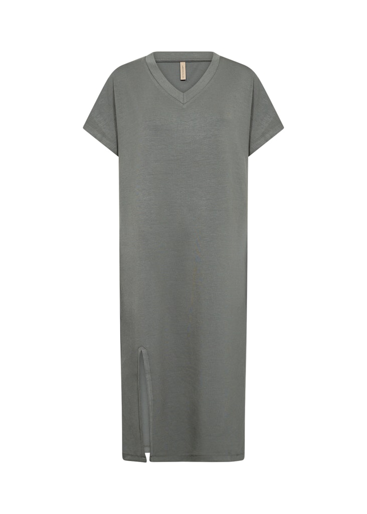 Jurk van Soya Concept met korte aangeknipte mouwen, V-hals en een split aan de rechter voorzijde. Materiaal: Modal 48%| polyester 48%| elastan 4%
