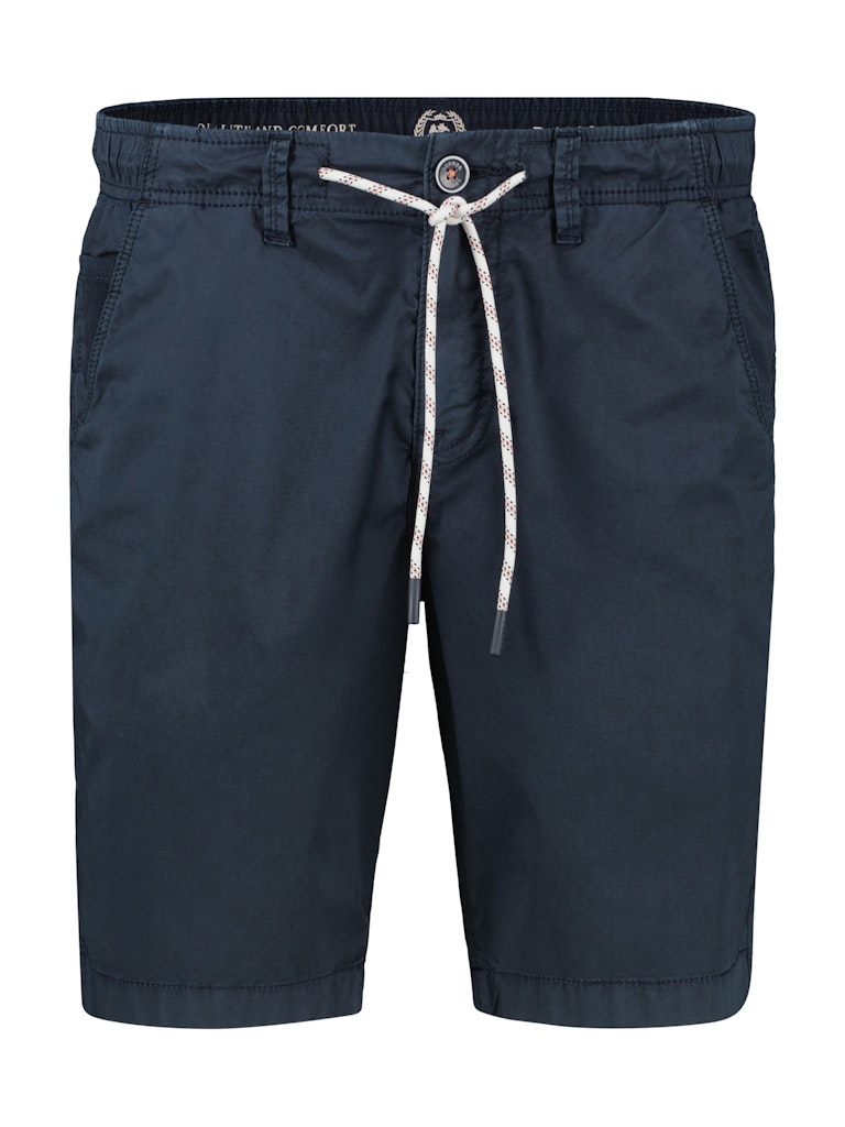 Short van Lerros met een knoop- en ritssluiting, steekzakken, opgestikte achterzakken en een elastische tailleband voorzien van trekkoord. Materiaal: Katoen 97%| elastan 3%