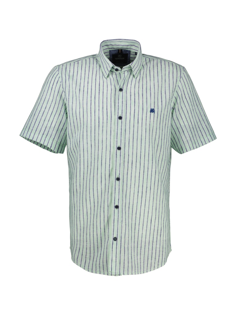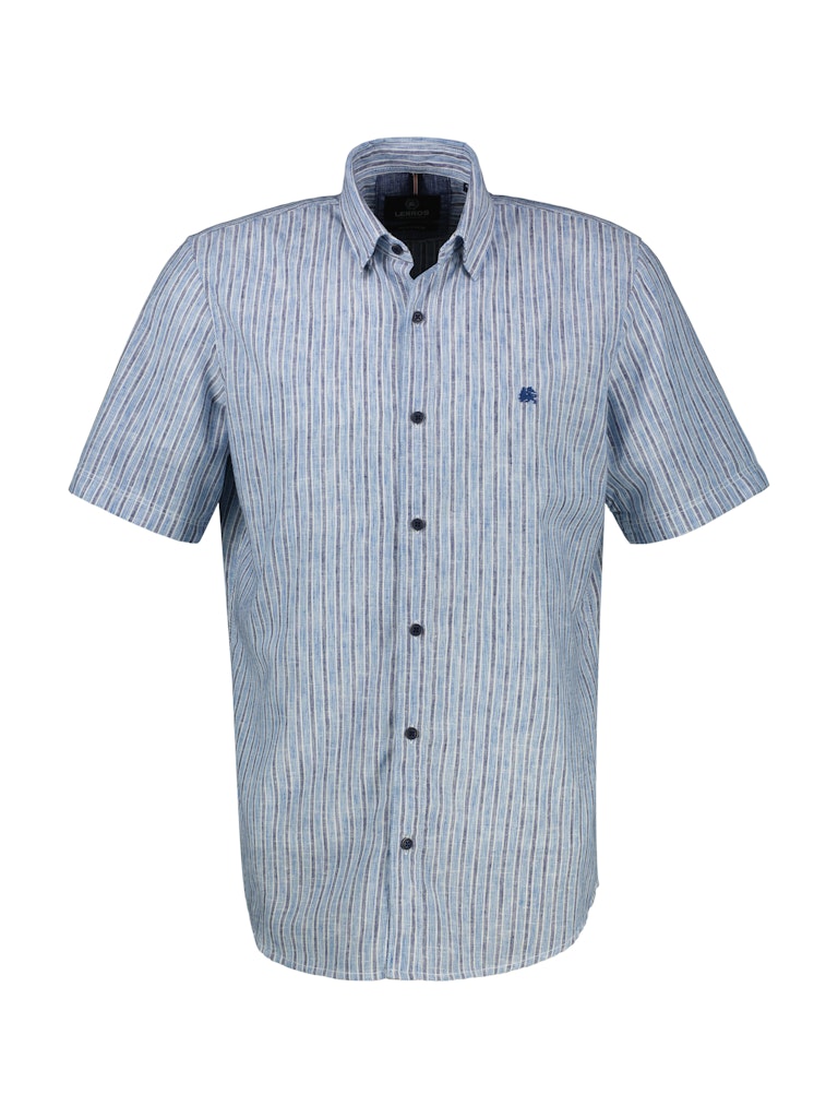 Gestreept overhemd van Lerros met korte mouwen, verborgen button-down kraag, knoopsluiting en een geborduurd logo op de linkerborst.