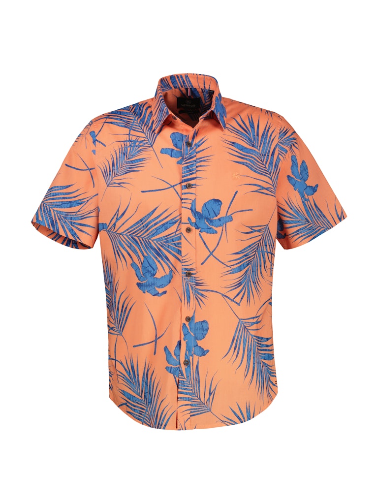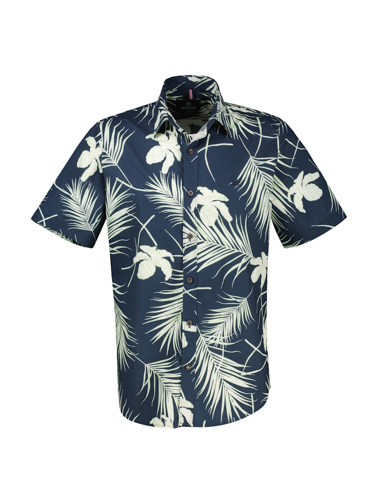Overhemd van Lerros in een bladeren dessin met korte mouwen, kraag en een knoopsluiting. Materiaal: Katoen 100%