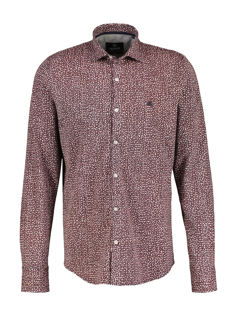 Overhemd van Lerros in een all-over dessin met lange mouwen, kraag en een geborduurd logo op de linkerborst. Materiaal: Katoen 100%