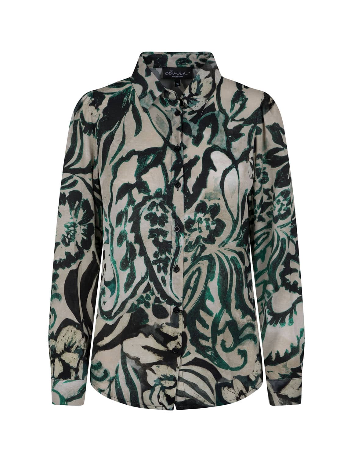 Blouse van Elvira in een all-over dessin met lange mouwen, kraag en knoopsluiting.
