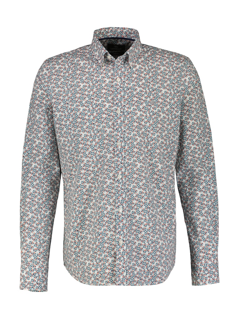 Overhemd van Lerros in een all-over dessin met lange mouwen, kraag, knoopsluiting en een geborduurd logo op de linkerborst.