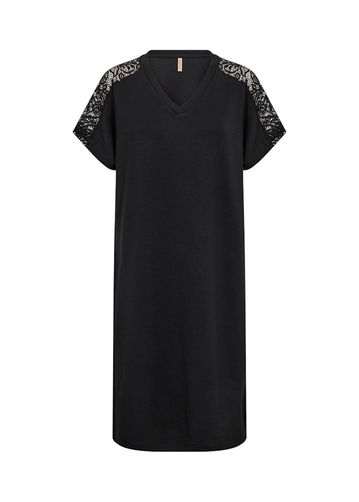 Jurk van Soya Concept met korte aangeknipte mouwen, V-hals en kanten details op de schouders. Materiaal: Modal 48%| polyester 48%| elastan 4%