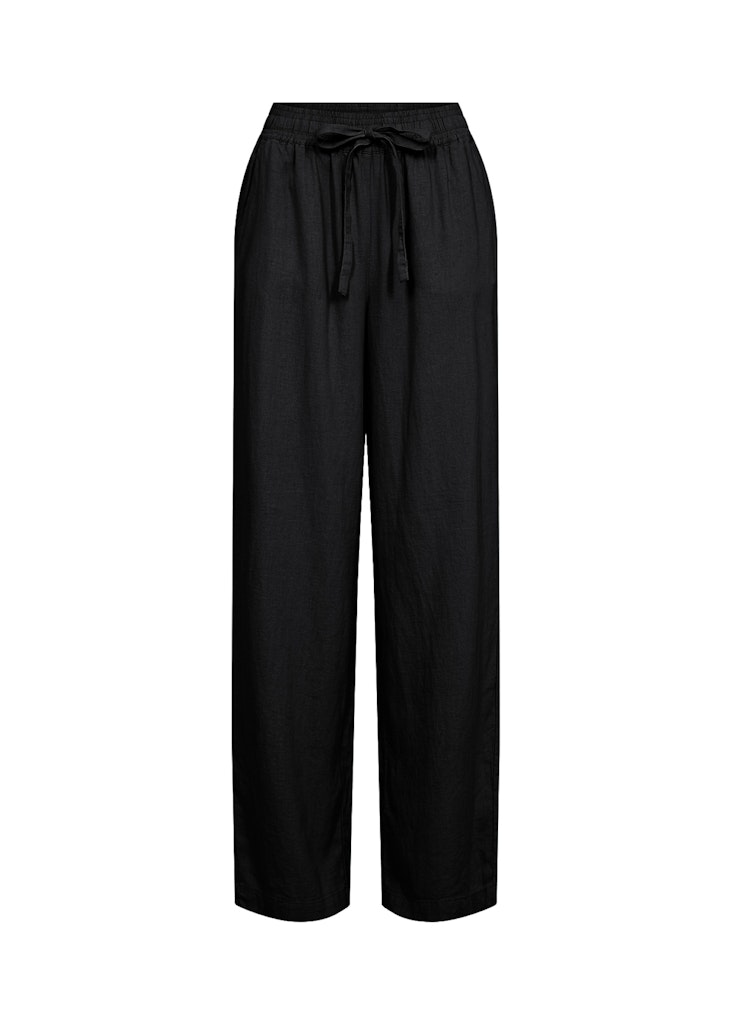 Broek van Soya Concept met wijde pijpen, steekzakken, paspelzakken aan de achterzijde en een elastische tailleband voorzien van trekkoord.