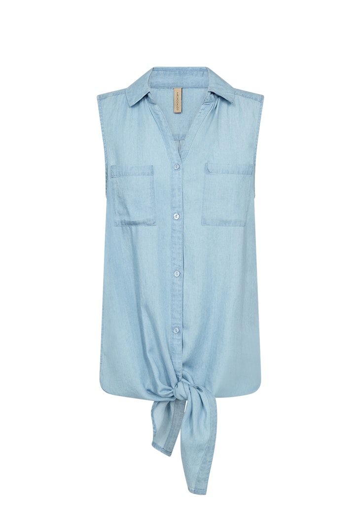 Mouwloze blouse van Soya Concept in een denim look met een kraag, V-hals, knoopsluiting, klepzakken op de borst en een knoopdetail in de zoom.