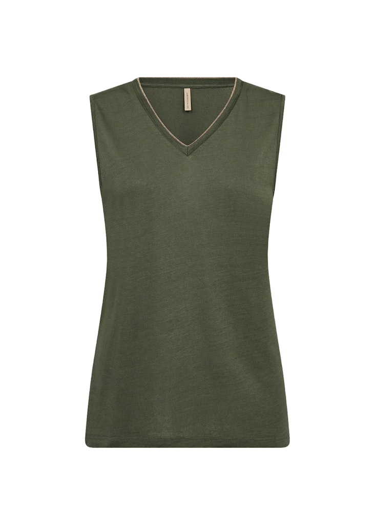 Mouwloze top van Soya Concept met een V-hals. Materiaal: Linnen 55%| viscose 45%