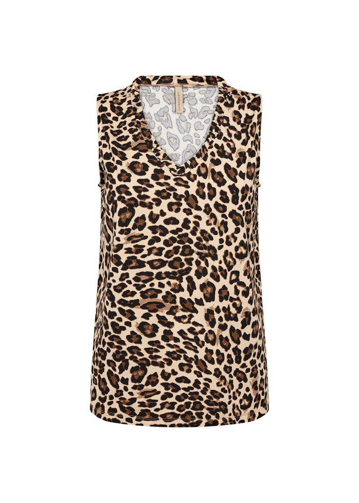 Mouwloze top van Soya Concept in een animal dessin met een V-hals. Materiaal: Lyocell 93%| elastan 7%